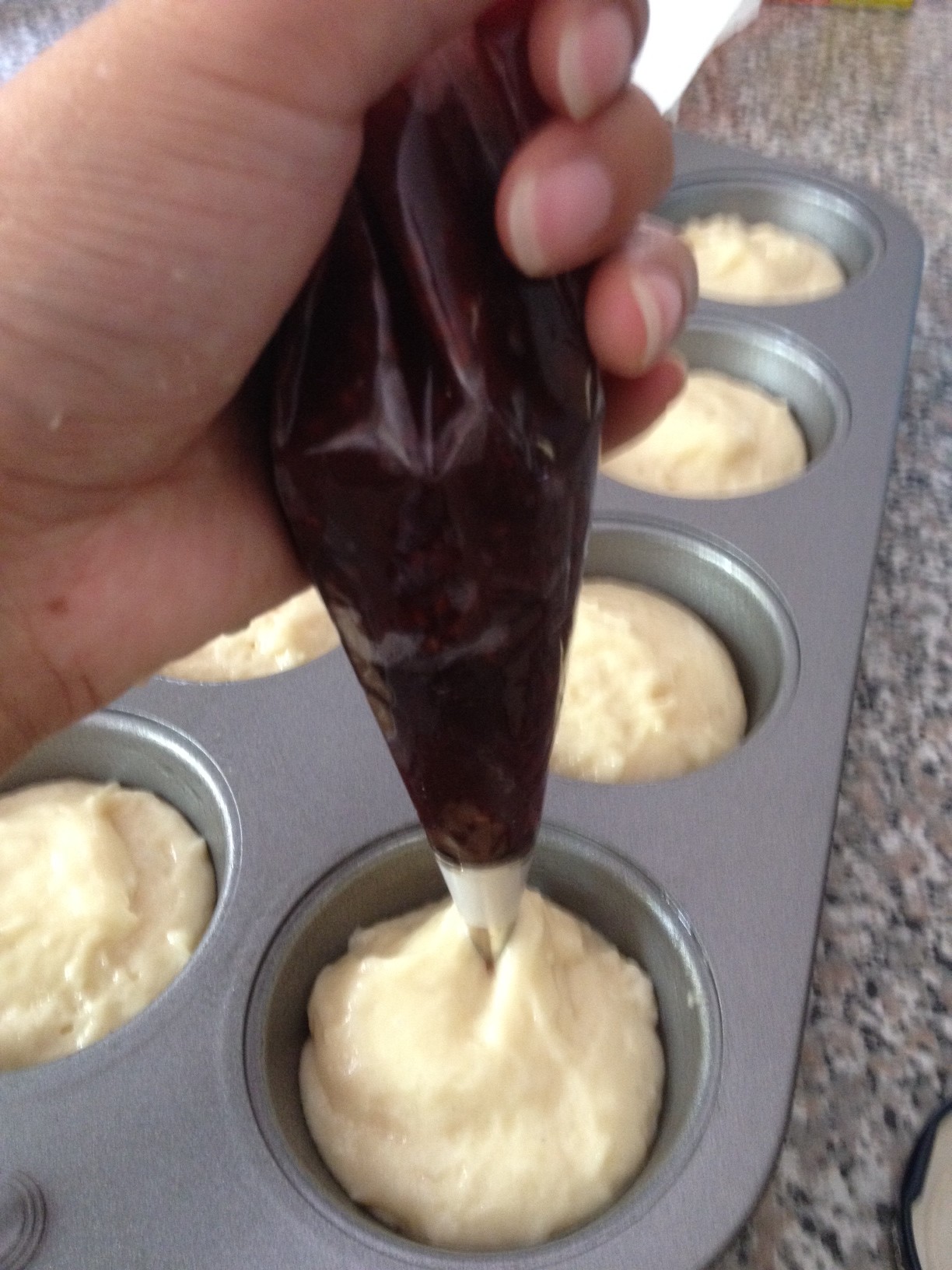 6. Divide the batter using an ice scream scoop to keep your cupcakes even in size.