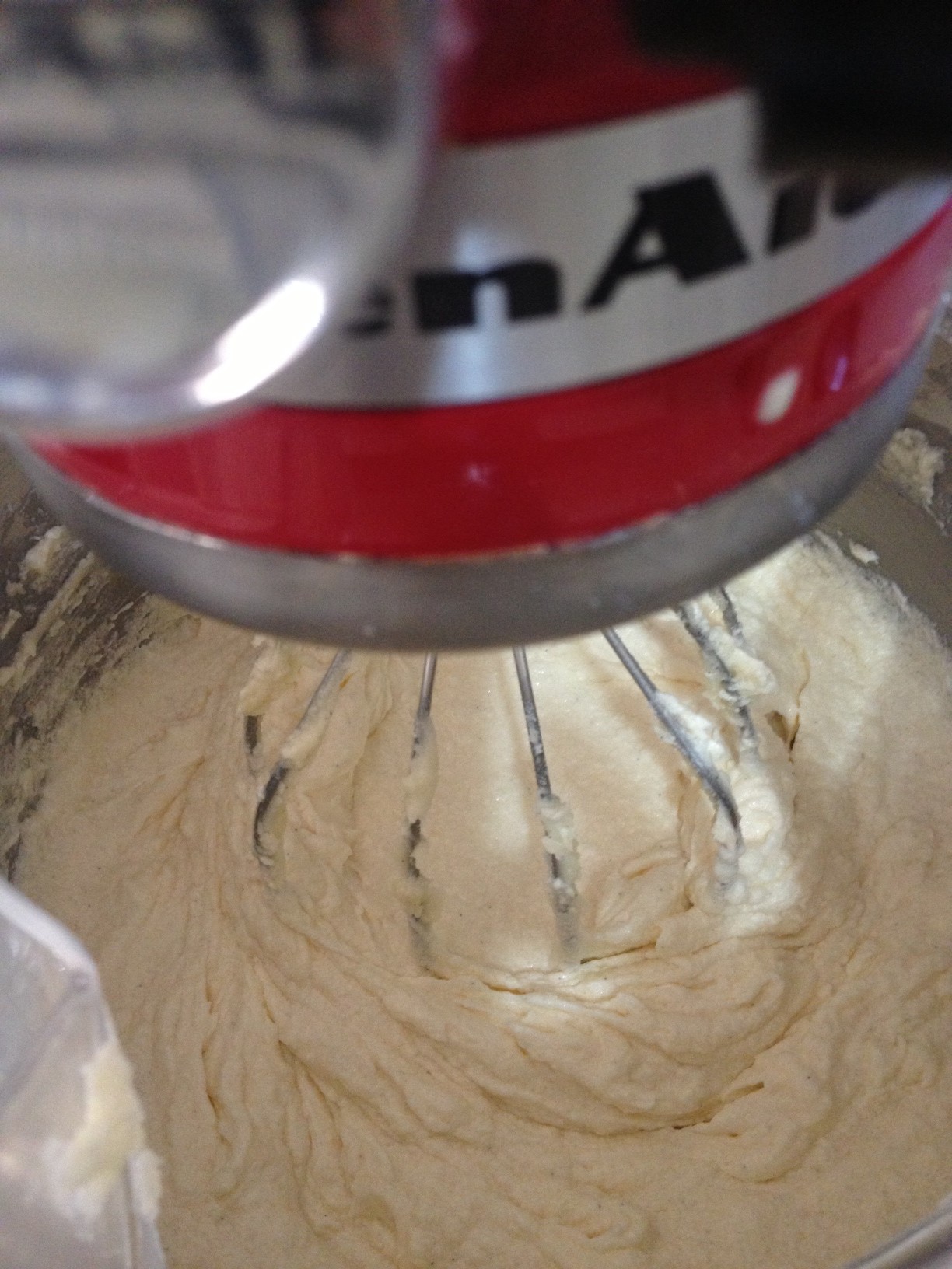 The first step is to cream your butter and sugar together – normally I would also add my vanilla extract at this stage, but seeing as I was using an emulsion, I left this step out.