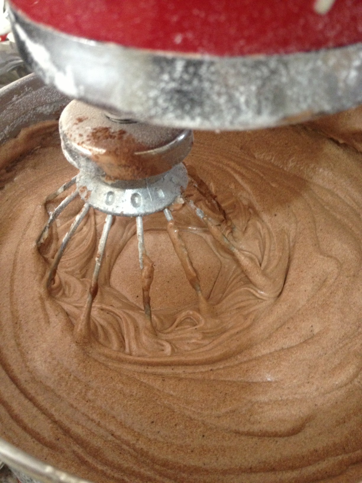 In the image above, I sifted my cocoa and flour together before adding to the batter. Now for the last step using this newly discovered product –